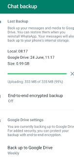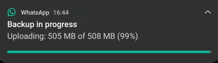 One of the most common reasons WhatsApp backup stalls at 99% is inadequate storage space. WhatsApp requires almost double the size of your chat data to complete a backup successfully. For example, a 2GB chat history may require over 4GB of free space during the backup process.